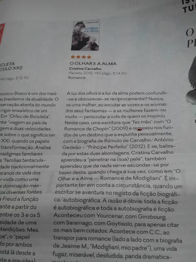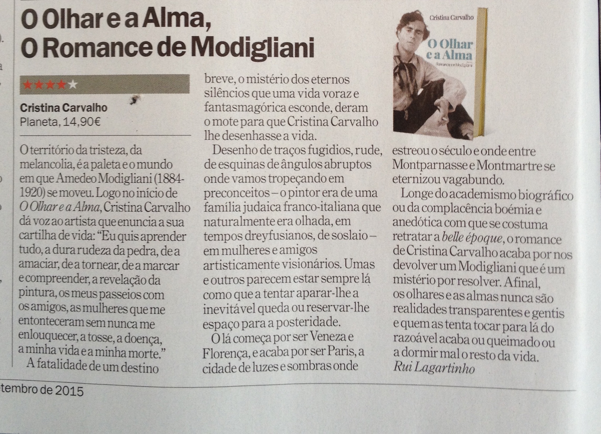 4 ESTRELAS para “O OLHAR E A ALMA, romance de Modigliani” no Expresso – Agosto 2015 – por Luisa Mellid-Franco
